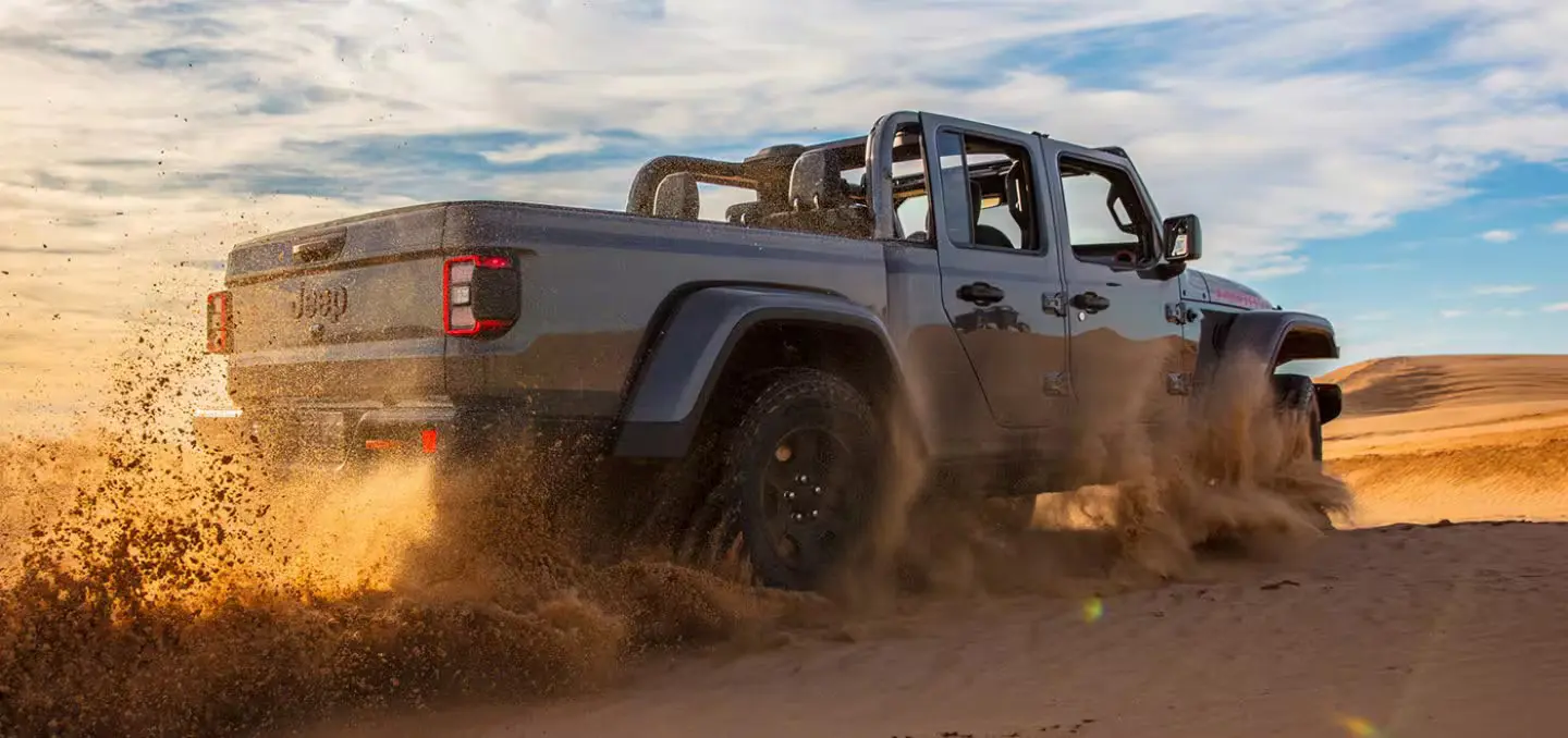 The Gladiator offers up to 11.6 inches of ground clearance, advanced 4x4 systems, locking differentials, and water fording up to 31.5 inches. Rubicon and Mojave trims provide the highest off road capability.